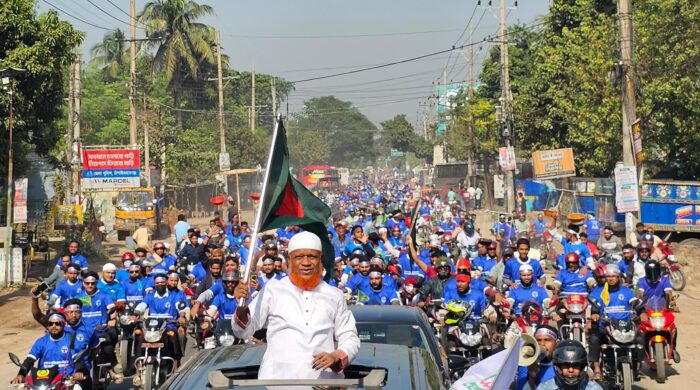 ইব্রাহিম খলিল, শার্শা (যশোর): আসন্ন ত্রয়োদশ জাতীয় সংসদ নির্বাচনকে সামনে রেখে যশোরের শার্শায় বাংলাদেশ জামায়াতে ইসলামী মনোনীত সংসদ সদস্য প্রার্থী মাওলানা আজীজুর রহমানের নেতৃত্বে প্রায় ৫ হাজার মোটরসাইকেলের বিশাল শোডাউন read more
