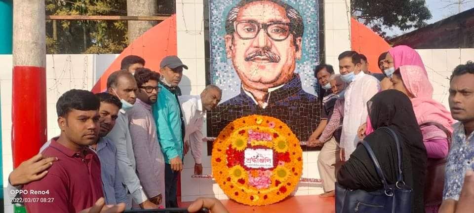আজ ৭ মার্চ সোমবার সকাল ৮ ঘটিকায় জাতীয় পএিকা উত্তোলন ও তাহেরপুর কলেজ গেটে বঙ্গবন্ধু শেখ মুজিবুর রহমানের প্রতিকৃতিতে পুষ্পস্তবক অর্পণ করেন।