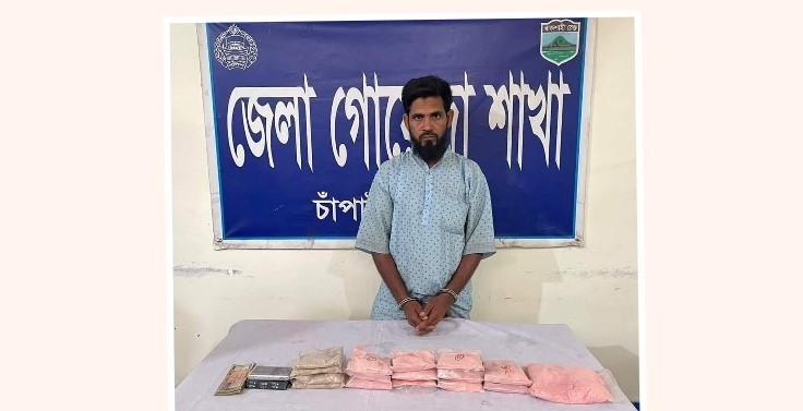 চাঁপাইনবাবগঞ্জ জেলা গোয়েন্দা শাখা, ডিবি পুলিশের মাদকবিরোধী অভিযানে ২ কোটি টাকা মূল্যের ২ কেজি হেরোইনসহ আনশুর নামে ১ ব্যক্তিকে গ্রেপ্তার করা হয়েছে।