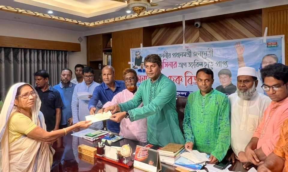 নাটোরে মাননীয় প্রধানমন্ত্রী শেখ হাসিনার ত্রাণ তহবিল থেকে দুঃস্থ অসহায় ২০ টি পরিবারের মাঝে আর্থিক অনুদানের চেক হস্তান্তর করা হয়েছে।
