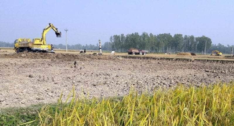 রাজশাহীর দুর্গাপুর উপজেলার কিসমত গনকৈড় ইউনিয়নের ভবানীপুর মৌজায় ৩০ বিঘা আবাদি কৃষি জমি নষ্ট করে পুকুর খনন অব্যাহত রয়েছে। স্থানীয় সূত্রে জানা যায় যে প্রকৃত জমির মালিকদের সাথে কোন রকম আলাপ আলোচনা না করে এবং তাদের সম্মতি না নিয়ে জোরপূর্বক ভাবে অত্র এলাকার আব্দুল লতিব দুর্গাপুর পৌরসভার ধরমপুর মহল্লার মোঃ মোশাররফ হোসেনের ২ দুটি ভেকু মেশিন ভাড়া নিয়ে গত শনিবার থেকে আবাদি কৃষি জমি নষ্ট করে পুকুর খনন কাজ করছে।