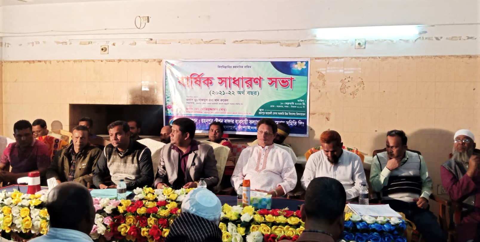রহনপুর স্টেশন বাজার ব্যবসায়ী কল্যাণ বহুমুখী সমবায় সমিতির সভাপতি মুঃ নাজমুল হুদা খান রুবেলের সভাপতিত্বে উপস্থিত ছিলেন, ব্যবসায়ী কল্যাণ বহুমুখী সমবায় সমিতির উপদেষ্টা মতিউর রহমান, সাবেক সভাপতি ও উপদেষ্টা আশরাফুল ইসলাম আশরাফ, সাবেক সভাপতি রেজাউল ইসলাম,