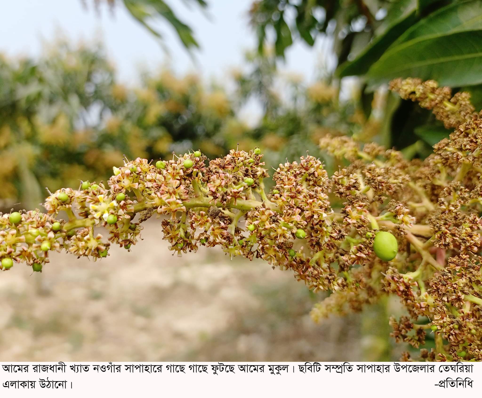 সাপাহারে গাছে গাছে শোভা পাচ্ছে আমের মুকুল