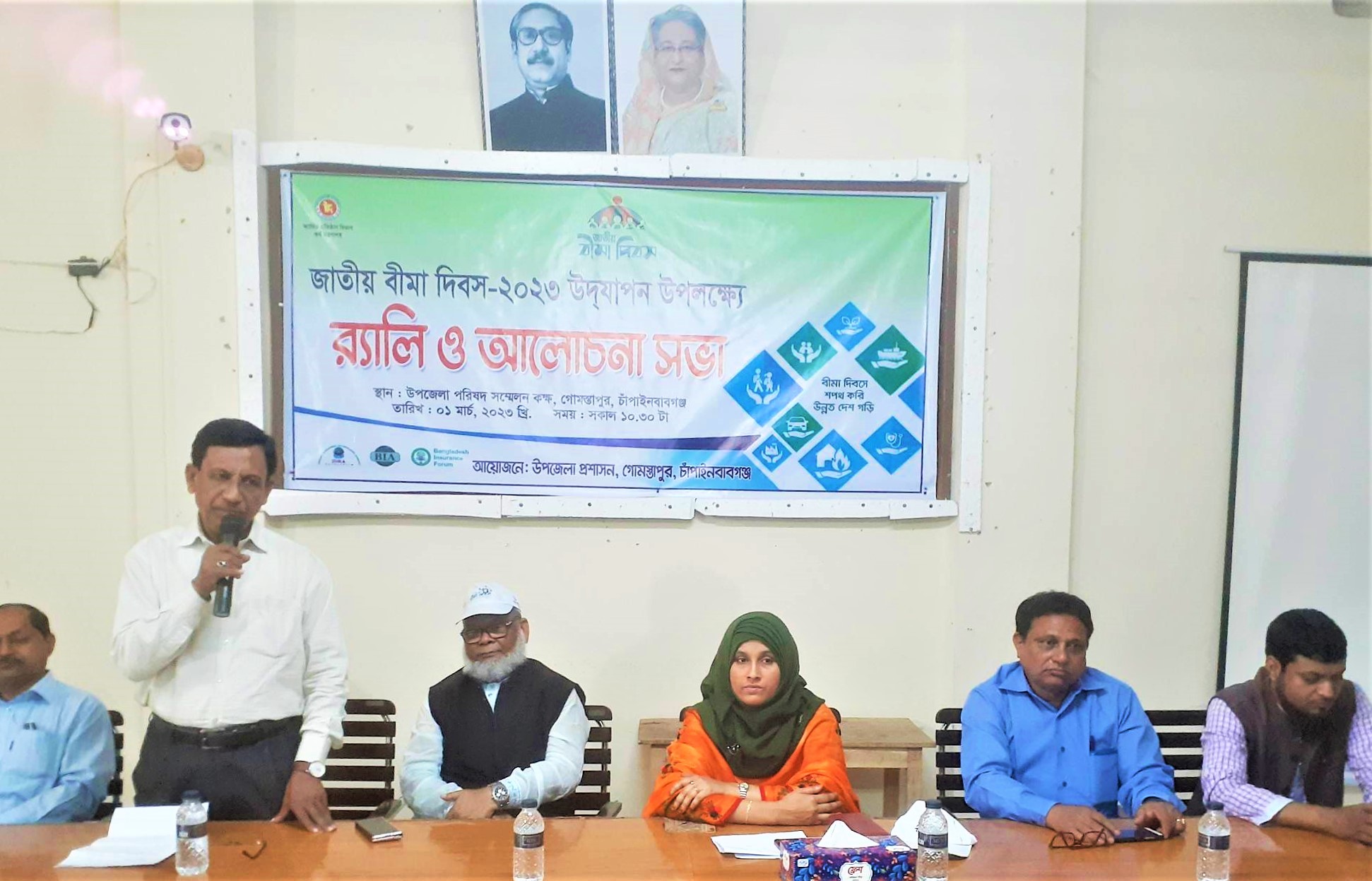 "বীমা দিবস শপথ করি উন্নত দেশে গড়ি " এ প্রতিপাদ্য কে সামনে নিয়ে চাঁপাইনবাবগঞ্জের গোমস্তাপুরে জাতীয় বীমা দিবস ২০২৩ উদযাপিত হয়েছে। দিবসটি উপলক্ষে র্যালি ও আলোচনা সভার আয়োজন করা হয়।
