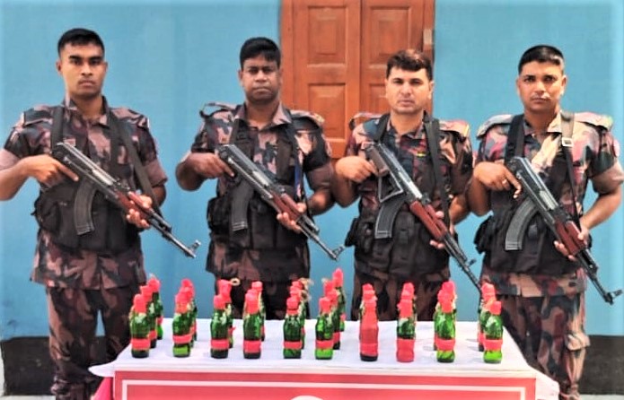 চাঁপাইনবাবগঞ্জের সোনামসজিদ সীমান্তে ৩১ টি পেট্রোল বোমা উদ্ধার করেছে ৫৯ বিজিবি