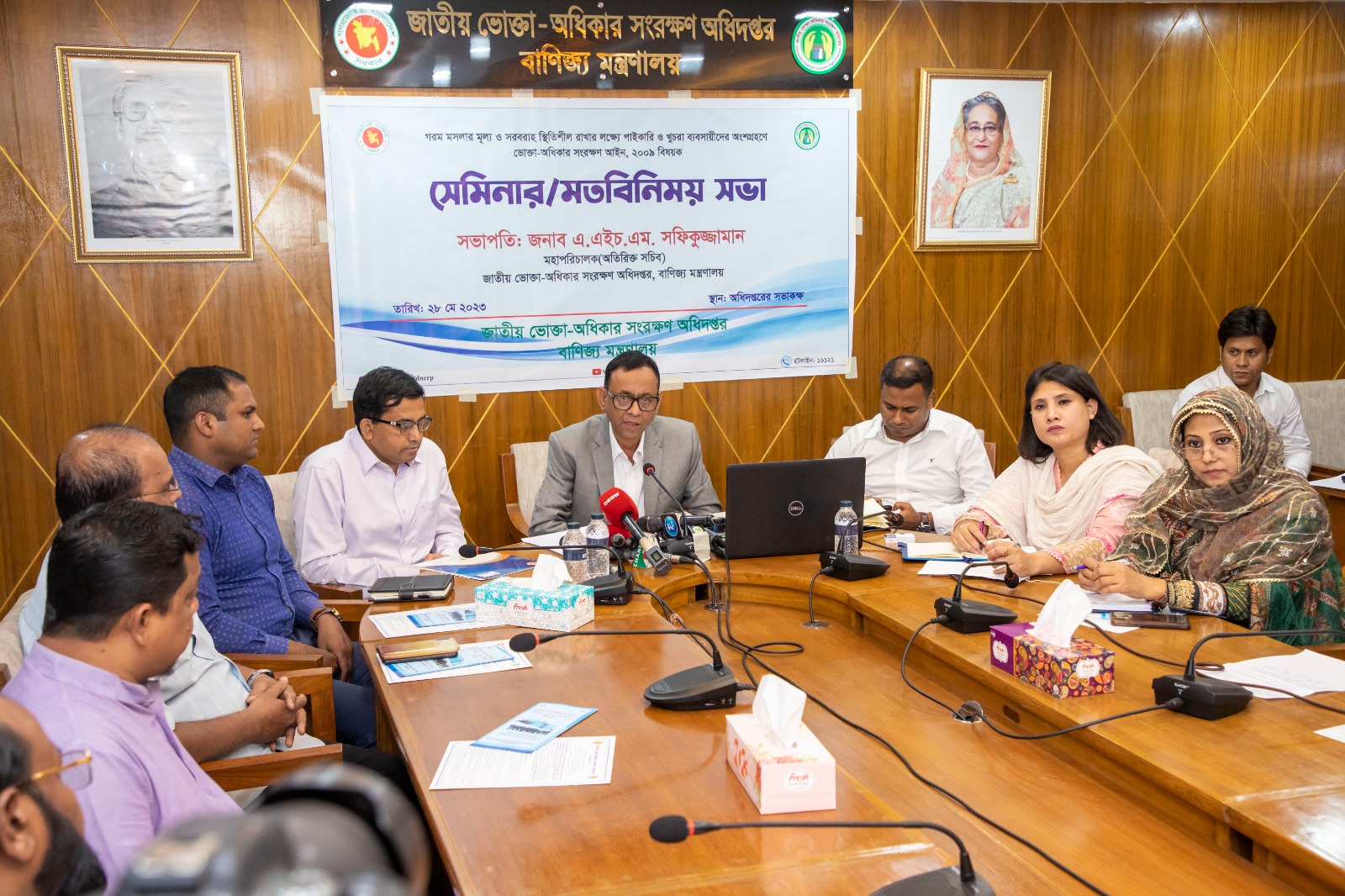 বর্ণিত সভায় সভাপতিত্ব করেন জাতীয় ভোক্তা-অধিকার সংরক্ষণ অধিদপ্তরের মহাপরিচালক (অতিরিক্ত সচিব) জনাব এ.এইচ.এম. সফিকুজ্জামান।