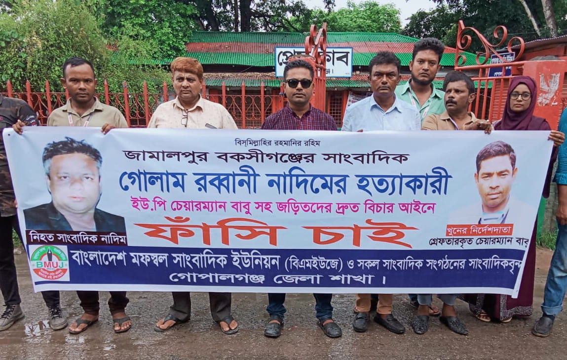 সাংবাদিক রাব্বানীর হত্যাকারীদের ফাঁসীর দাবীতে গোপালগঞ্জে বিএমইউজে সহ সকল সাংবাদিকদের মানববন্ধন