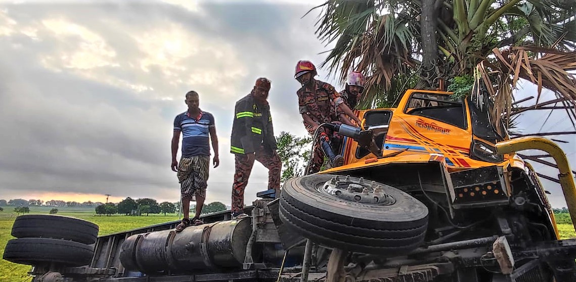 নাচোলে ধান বোঝাই ট্রাক উল্টে চালক নিহত