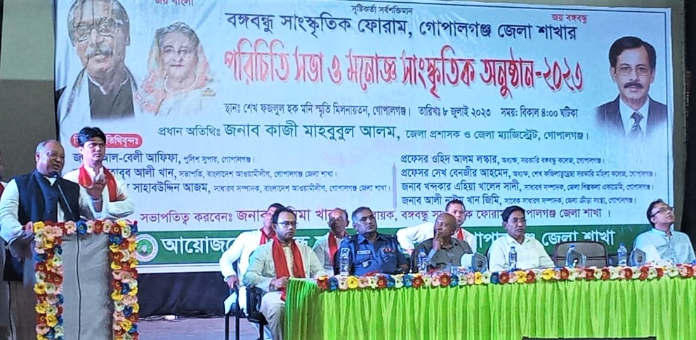 শনিবার ৮ই জুলাই বিকাল ৪ ঘটিকার সময় গোপালগঞ্জ শেখ ফজলুল হক মনি স্মৃতি মিলনায়তনে বঙ্গবন্ধু সাংস্কৃতিক ফোরাম গোপালগঞ্জ জেলার নব গঠিত কমিটির উদ্দ্যেগে এ পরিচিতি সভা ও মনোজ্ঞ সাংস্কৃতিক অনুষ্ঠানের আয়োজন করা হয়।