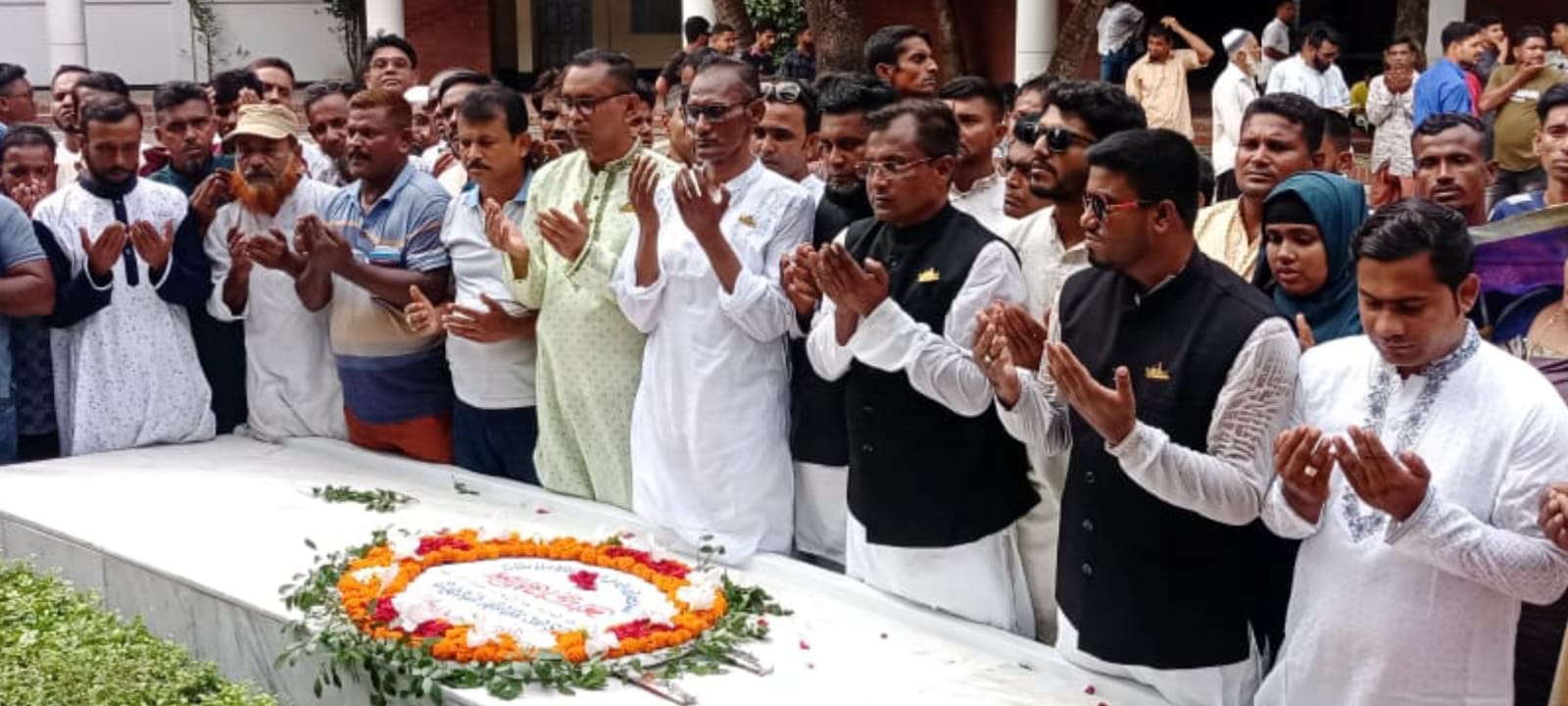 বৃহস্পতিবার দুপুরে টুঙ্গিপাড়া পৌঁছে বঙ্গবন্ধু'র সমাধি সৌধের বেদিতে পুষ্পস্তবক অর্পণ করে গভীর শ্রদ্ধা নিবেদন করেন। এরপর ফাতিহা ও দুরুদ পাঠ শেষে ৭৫এর ১৫ই আগস্ট বঙ্গবন্ধু'সহ পরিবারের নিহত সকল সদস্য এবং ১৯৭১ সালের মহান মুক্তিযুদ্ধে সকল শহীদদের রুহের আত্মার মাগফেরাত কামনা করে বিশেষ দোয়া ও মোনাজাত করেন তারা। দোয়া ও মোনাজাত শেষে জাতীয় শ্রমীক লীগের ৫৪ তম প্রতিষ্ঠা বার্ষিকী উপলক্ষে কেক কেটে সারা দিনের কর্মসূচী ঘোষনা দেন তারা।