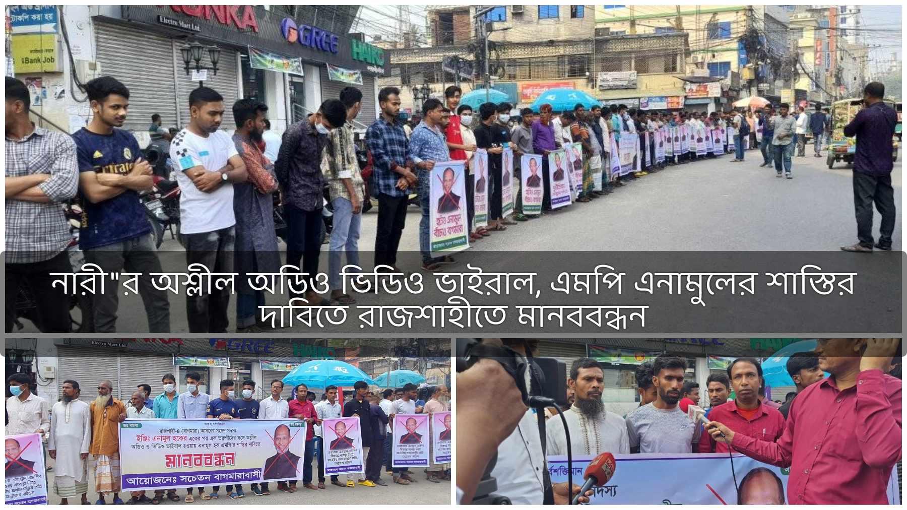 সামাজিক যোগাযোগ মাধ্যমে রাজশাহী-৪ বাগমারা আসনের সংসদ সদস্য ইঞ্জিঃ এনামুল হকের একাধিক তরুণীর সাথে একের পর এক অশ্লীল ফোনালাপ ও ভিডিও ভাইরাল হওয়ায় সচেতন বাগমারাবাসীর ব্যানারে এমপি’র শাস্তির দাবীতে মানববন্ধনটি অনুষ্ঠিত হয়েছে।