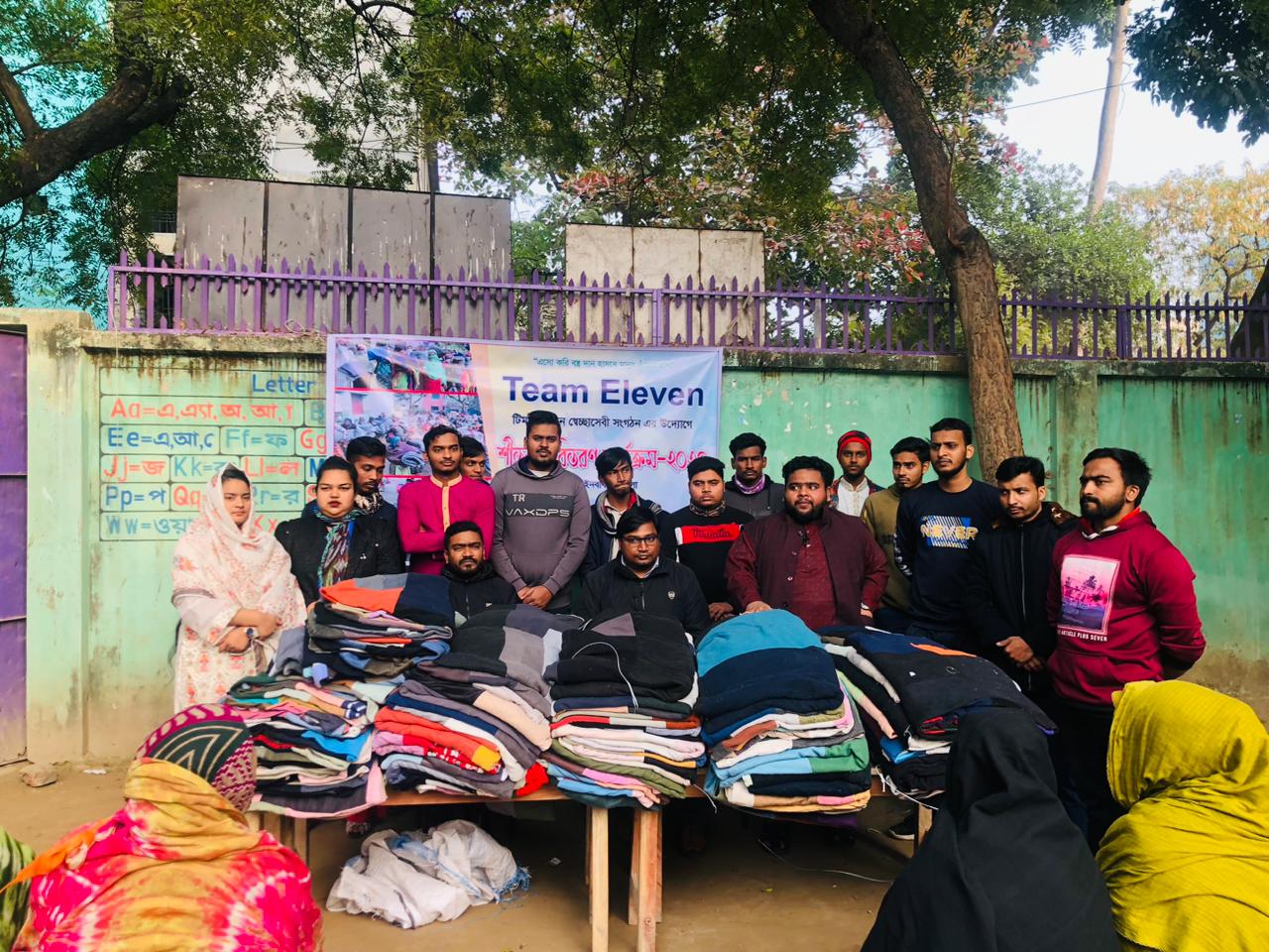 চাঁপাইনবাবগঞ্জে স্বেচ্ছাসেবী সংগঠন টিম এলিভেন এর উদ্যোগে শীতার্ত মানুষের মাঝে কম্বল বিতরণ