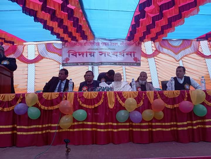 চাঁপাইনবাবগঞ্জে’র নাচোলে পাঠশালা স্কুল অ্যান্ড কলেজের উদ্যোগে এসএসসি পরীক্ষার্থীদের বিদায়,বার্ষিক ক্রীড়া প্রতিযোগীতা, পুরস্কার বিতরণ ও নবীণ-বরণ অনুষ্ঠিত হয়েছে। সোমবার সকাল ১০ টায় পাঠশালা স্কুল অ্যান্ড কলেজ চত্বরে শির্ক্ষাীদের বিদায় সংবর্দনা দেয়া হয়। অধ্যক্ষ মো. শাহাদাত হোসেন এর সভাপতিত্বে আলোচনা সভায় প্রধান অতিথির বক্তব্য রাখেন পৌর মেয়র আব্দুর রশিদ খান ঝালু। বিশেষ অতিথির বক্তব্য রাখেন নাচোল সরকারি কলেজের সাবেক অধ্যাপক ইসলাম উদ্দিন,লুৎফর রহমান প্রমুখ। পরে বিজয়ী শিক্ষার্থীদের মাঝে পুরস্কার বিতরণ করা হয়।