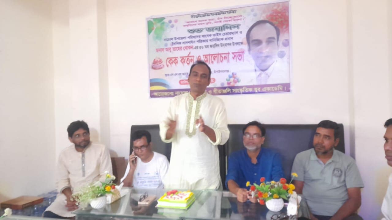 দৈনিক আমাদের সময় এর নাচোল প্রতিনিধি নুরুল ইসলাম বাবুর সভাপতিত্বে আলোচনা সভায় প্রধান অতিথির বক্তব্য রাখেন সাবেক ভাইস চেয়ারম্যান আবু তাহের খোকন। বিশেষ অতিথির বক্তব্য রাখেন দৈনিক যায়যায়দিন এর প্রতিনিধি মতিউর রহমান,দৈনিক ইনকিলাব এর প্রতিনিধি শহিদুল ইসলাম, দৈনিক ইত্তেফাক এর সংবাদদাতা হাসানুজ্জামান, দৈনিক মাতৃভুমির খবর এর নাচোল প্রতিনিধি আব্দুস সামাদ,দৈনিক মানবকণ্ঠ এর প্রতিনিধি ইব্রাহিম, দৈনিক আমাদের নতুন সময়ের শাকিল রেজা, দৈনিক আমার সংবাদ এর প্রতিনিধি মনিরুল ইসলাম খবরপত্রে নাচোল প্রতিনিধি সোহেল রানা, জনতার নাচোল প্রতিনিধি জাকিরুল হাসান পলাশসহ সাংস্কৃতিক কর্মী ও গন্যমান্য ব্যাক্তিবর্গ উপস্থিত ছিলেন । অনুষ্ঠানটি ব্যবস্থাপনা ও সঞ্চালনা করেন দৈনিক সানশাইন ও ভোরের ডাকের নাচোল সংবাদদাতা অলিউল হক ডলার। উপস্থিত সকলে আবু তাহের খোকনকে জন্মদিনের শুভেচ্ছা জানান ও তার দীর্ঘয়ু মংগল কামনা করেন।