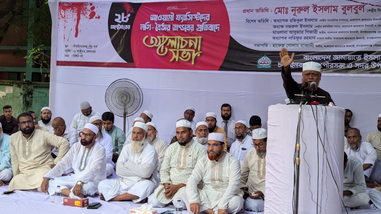 অন্যান্যদের মধ্যে বক্তব্য রাখেন চাঁপাইনবাবগঞ্জ জেলা সেক্রেটারী অধ্যাপক আবু বকর, সদর উপজেলা পরিষদের সাবেক চেয়ারম্যান মূখলেসুর রহমান, জেলা সহকারি সেক্রেটারি মাওলানা ওমর ফারুক, চাঁপাইনবাবগঞ্জ শহর শাখা ইসলামী ছাত্রশিবির সভাপতি ওমর ফারুক, বাংলাদেশ শ্রমিক কল্যণ ফেডারেশনের জেলা সভাপতি অধ্যাপক মোজাম্মেল হক, চাঁপাইনবাবগঞ্জ পৌর নায়েবে আমীর এডভোকেট শফিক এনায়েতউল্লাহ, পৌর সেক্রেটারী মোক্তার হোসেন, সদর উপজেলা সেক্রেটারী অধ্যাপক গোলাম কবীর, পৌরসভা শাখা সহকারি সেক্রেটারি মাওলানা আব্দুল হাই, সদর উপজেলা সহকারী সেক্রেটারী অধ্যাপক দুরুল হুদা, পৌর শাখার সহকারী সেক্রেটারী তোহরুল ইসলাম সোহেল, সদর উপজেলা সহকারী সেক্রেটারী আব্দুর রহমান প্রমুখ নেতৃবৃন্দ।