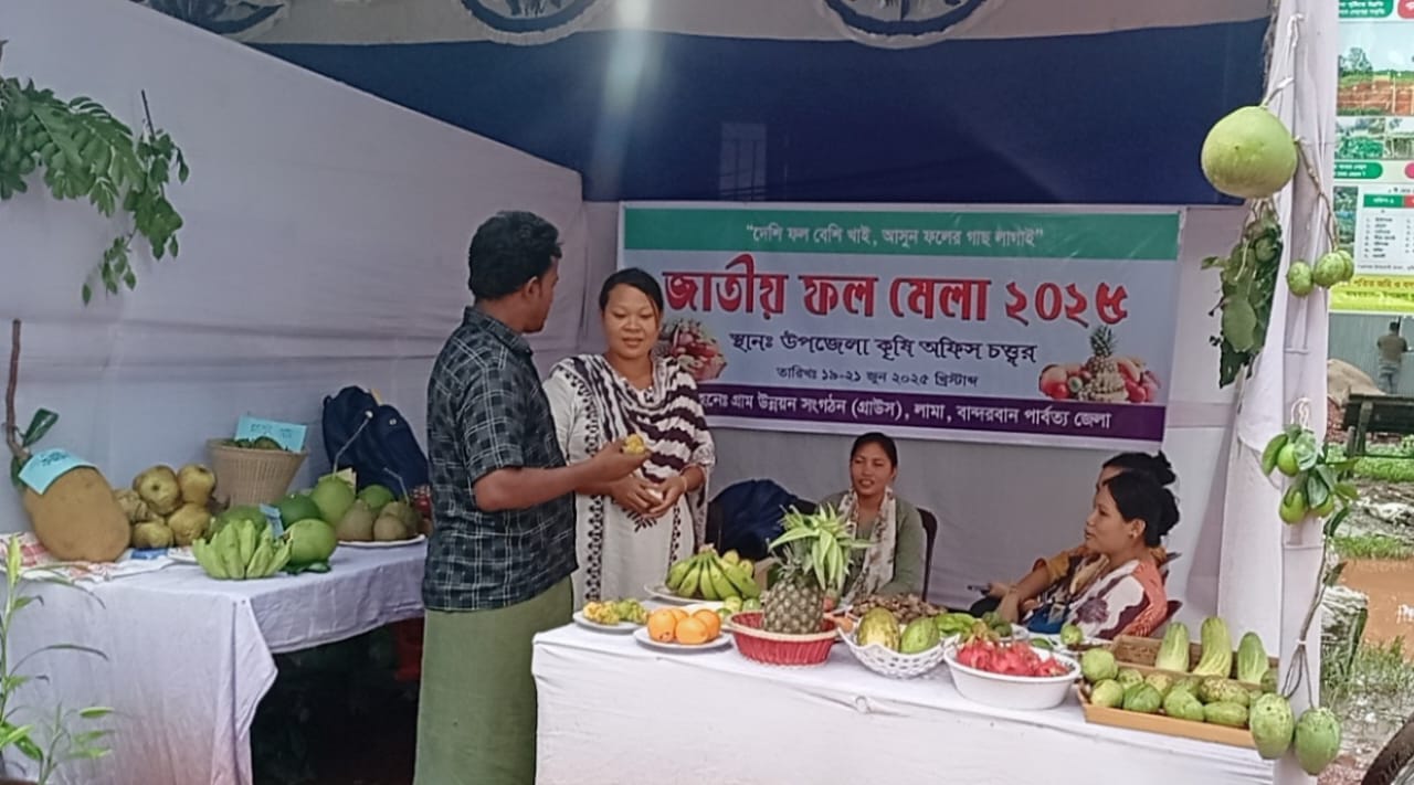 আজ বৃহস্পতিবার ১৯ শে জুন ২০২৫ ইং হইতে,তিন দিন ব্যাপী জাতীয় ফল মেলা ২০২৫ আয়োজন করা হয়েছে, কৃষি সম্প্রসারণ অধিদপ্তর লামা বান্দরবান, এই মেলাটি পরিচালনা করেন লামা উপজেলা কৃষি অফিসার ও কৃষিবিদ ( জনাব আশরাফুজ্জামান সোহেল ) দুইটি স্টলে বাহারি রঙের দেশী ও বিদেশী জাতের ফল এই মেলায় স্থান পেয়েছে। মেলায় এসে পছন্দমত ফলের চারা সংরক্ষণ করে নিজের বাড়িরতে ছাদ বাগানে,পাহাড়ে,কৃষি জমিতে, রুপন করতে পারবেন। এতে করে পারিবারের ফলের চাহিদা মিটবে যেমন দেশ ও দেশের বাহিরে রপ্তানি করতে পারবেন বলে আশা করছেন লামা উপজেলা কৃষিবিদ আশরাফুজ্জামান সোহেল সাহেব। লামা কৃষি অফিসের সাথে যোগা যোগ করে পছন্দের ফলের চারা সংগ্রহ করতে পারবেন।