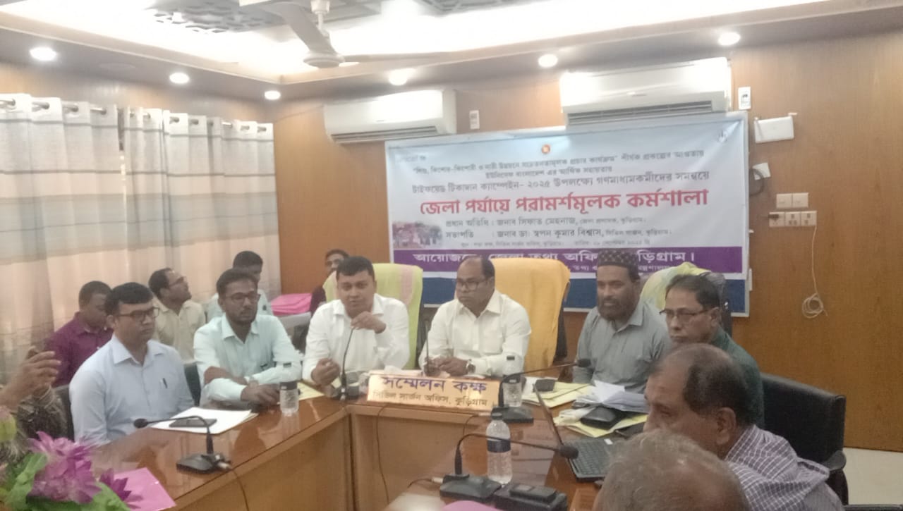 কুড়িগ্রামে “শিশু, কিশোর-কিশোরী ও নারী উন্নয়নে সচেতনতামূলক প্রচার কার্যক্রম” প্রকল্পের আওতায় ইউনিসেফ বাংলাদেশের আর্থিক সহায়তায় টাইফয়েড টিকাদান ক্যাম্পেইন-২০২৫ উপলক্ষে গণমাধ্যমকর্মীদের সমন্বয়ে জেলা পর্যায়ে পরামর্শমূলক কর্মশালা অনুষ্ঠিত হয়েছে।