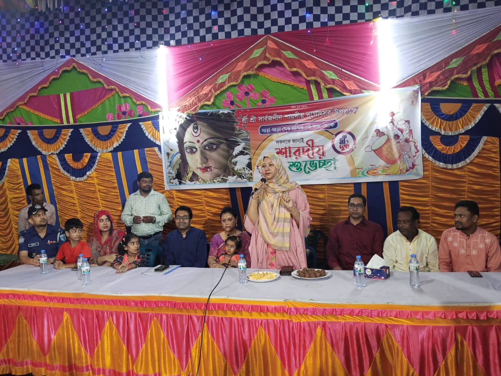 জেলা প্রশাসক শিফাত মেহনাজ পূজা উপলক্ষে সবাইকে শুভেচ্ছা জানিয়ে বলেন, শান্তিপূর্ণভাবে পূজা উদযাপন হচ্ছে—এ জন্য সকলকে ধন্যবাদ। তিনি আশা প্রকাশ করেন, বাকি দিনগুলোও সুন্দরভাবে উদযাপন হবে এবং এ ব্যাপারে সবাইকে সহযোগিতা করার আহ্বান জানান।