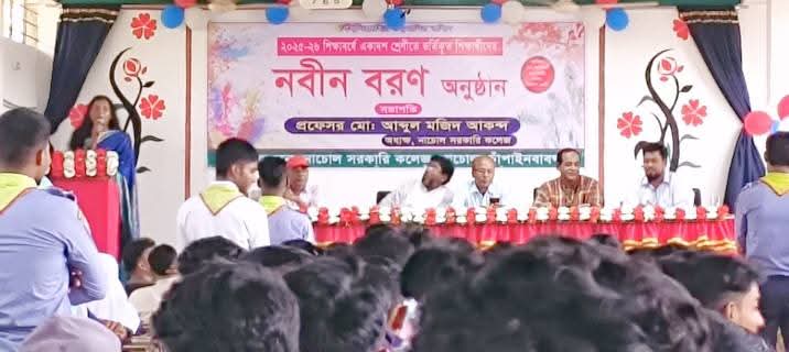 চাঁপাইনবাবগঞ্জের নাচোল সরকারী কলেজে,একাদশ শ্রেণীর ছাত্র ছাত্রীদের নবীন বরণ অনুষ্ঠিত। রবিবার নবীন শিক্ষার্থীদের ছাত্রদলের পক্ষ থেকে ফুল ও কলম উপহার দিয়ে বরণ করে নেয়া হয়। উপজেলা ও সরকারি কলেজ ছাত্রদল উপস্থিত থেকে নবীনদের বরণ করে নেওয়া হয়। সে সময় উপস্থিত ছিলেন,নাচোল সরকারি ডিগ্রী কলেজ ছাত্রদলের সাবেক সদস্য সচিব আব্দুল আলিম, সাবেক যুগ্ম আহ্বায়ক নাচোল পৌর ছাত্রদল, মোঃরাসেল রানা, মোঃ শাহরিয়ার সাবেক যুগ্ম আহ্বায়ক কলেজ ছাত্রদল নাইম রেজা, সাবেক যুগ্ম আহ্বায়ক কলেজ ছাত্রদল,মোঃ আলামিনসহ সভাপতি নাচোল সরকারি ডিগ্রি কলেজ ছাত্রদল, কলেজ ছাত্রনেতা সমুনসহ অন্যান্য নেতৃবৃন্দ উপস্থিত ছিলেন।