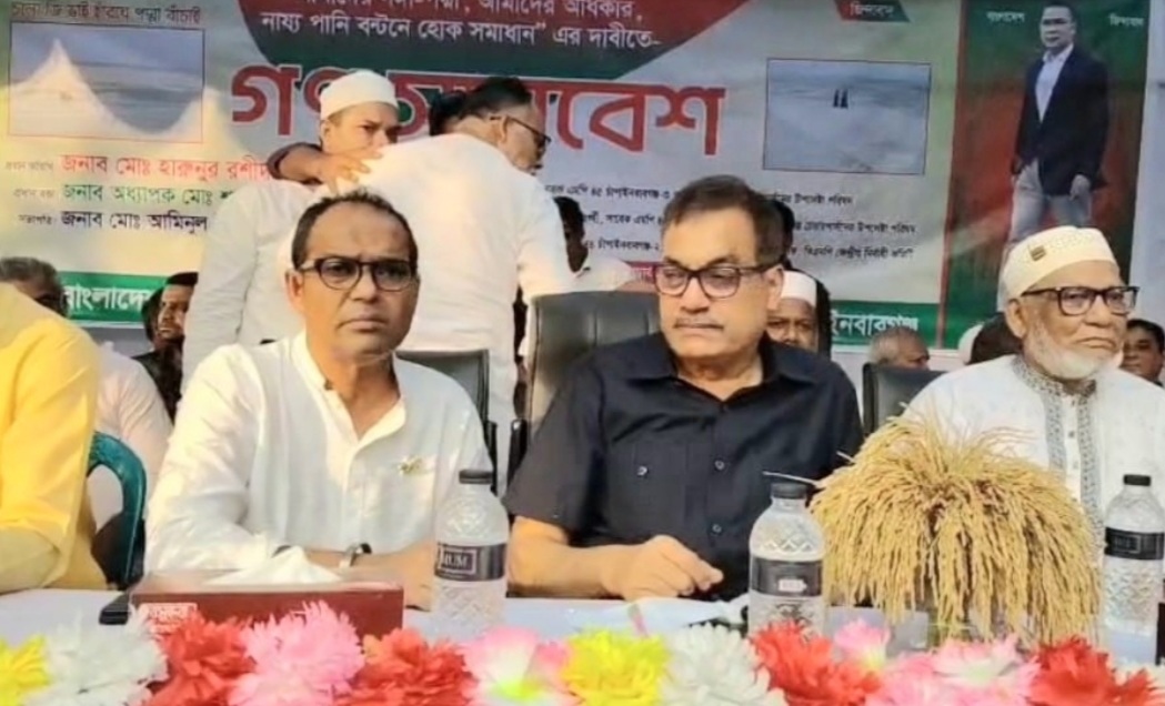 চাঁপাইনবাবগঞ্জের নাচোলে পদ্মা নদীর ন্যায্য পানি বন্টনে দাবিতে গণসমাবেশ অনুষ্ঠিত হয়েছে। বৃহস্পতিবার বিকাল নাচোল ডাকবাংলো প্রাঙ্গনে বিএনপি'র আয়োজনে "আমাদের গঙ্গা-পদ্মা আমাদের অধিকার,নায্য পানি বন্টনে হোক সমাধান"এর দাবিতে গণ সমাবেশ অনুষ্ঠিত হয়েছে। চাঁপাইনবাবগঞ্জ দুই আসনের বিএনপি দলীয় এমপি মনোনীত প্রার্থী আলহাজ্ব আমিনুল ইসলামের সভাপতিত্বে প্রধান অতীতের বক্তব্য রাখেন চাঁপাইনবাবগঞ্জ-৩ আসনের বিএনপি দলীয় সংসদ সদস্য পদপ্রার্থী হারুন অর রশিদ। প্রধান বক্তা হিসাবে উপস্থিত ছিলেন বিএনপি চেয়ারপারসনের উপদেষ্টা ও চাঁপাইনবাবগঞ্জ-১ আসনের বিএনপি দলীয় প্রার্থী শাজাহান মিয়া শাজাহান মিয়া। এছাড়া অনুষ্ঠানে উপস্থিত ছিলেন নাচোল উপজেলা বিএনপির সাবেক সভাপতি এ্যাড: মাইনুল ইসলাম, কৃষক দলের আহবায়ক ও চাঁপাইনবাবগঞ্জ উপজেলা পরিষদের চেয়ারম্যান তোসিকুল ইসলাম তসি, উপজেলা বিএনপির সাবেক সাংগঠনিক সম্পাদক নূর কামাল,পৌর বিএনপির সাবেক সভাপতি মোসাদ্দেকুর রহমান, সাবেক সাধারণ সম্পাদক দুরুল হোদা, কসবা ইউনিয়ন পরিষদের চেয়ারম্যান জাকারিয়া আল মেহরাব ও বিএনপি নেতা আশরাফুল ইসলামসহ বিএনপির অংগ সংগঠনের নেতৃবৃন্দ। অনুষ্ঠানটি সঞ্চালনা করেন উপজেলা যুবদলের সভাপতি প্রভাষক আসিক মাহমুদ।