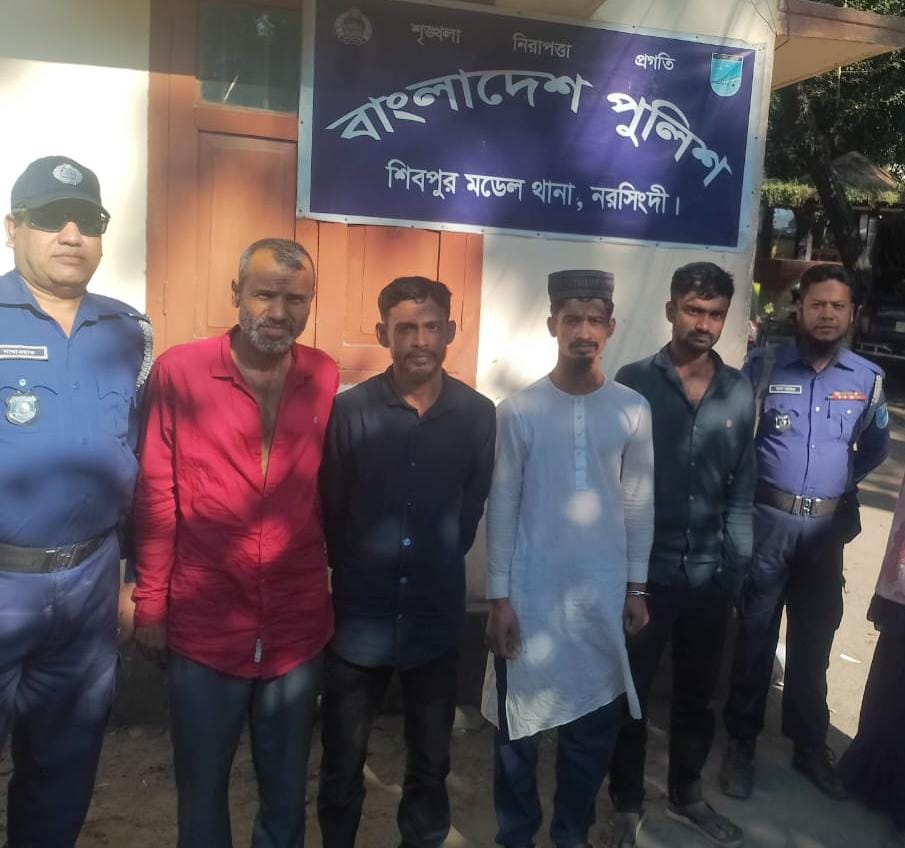 মোঃ কামাল হোসেন প্রধান জেলা প্রতিনিধি নরসিংদীঃ নরসিংদীতে অপরাধ দমনে জেলা পুলিশের অভিযান আরও জোরদার করা হয়েছে। নিয়মিত মামলা,পরোয়ানাভুক্ত আসামি,মাদক ব্যবসায়ীসহ বিভিন্ন অপরাধে জড়িত মোট ৫৫ জনকে গত ২৪ ঘণ্টায় গ্রেফতার করেছে পুলিশ। নরসিংদী জেলায় আইনশৃঙ্খলা স্বাভাবিক রাখা এবং অপরাধী এর বিরুদ্ধে কঠোর অবস্থান নিশ্চিতের অংশ হিসেবে জেলার সকল থানা ও ইউনিটকে মাঠে থাকতে নির্দেশনা দেন নরসিংদীর পুলিশ সুপার মোঃ মেনহাজুল আলম,পিপিএম। এরই ধারাবাহিকতায় জেলা পুলিশের একাধিক টিম টানা অভিযান পরিচালনা করে।মাদকবিরোধী অভিযানে ৭০ পিস ইয়াবা ট্যাবলেট উদ্ধার করা হয়েছে। এ সময় মাদক ব্যবসার সঙ্গে জড়িত তিনজনকে গ্রেফতার করে আইনগত ব্যবস্থা গ্রহণ করেছেন।জেলা পুলিশের সংশ্লিষ্ট কর্মকর্তারা জানান, অপরাধ দমনে তৎপরতা অব্যাহত থাকবে এবং মাদক, চাঁদাবাজি,ছিনতাই ও অন্যান্য অপরাধমূলক কর্মকাণ্ড এর বিরুদ্ধে জিরো টলারেন্স নীতি অনুসরণ করা হচ্ছে।