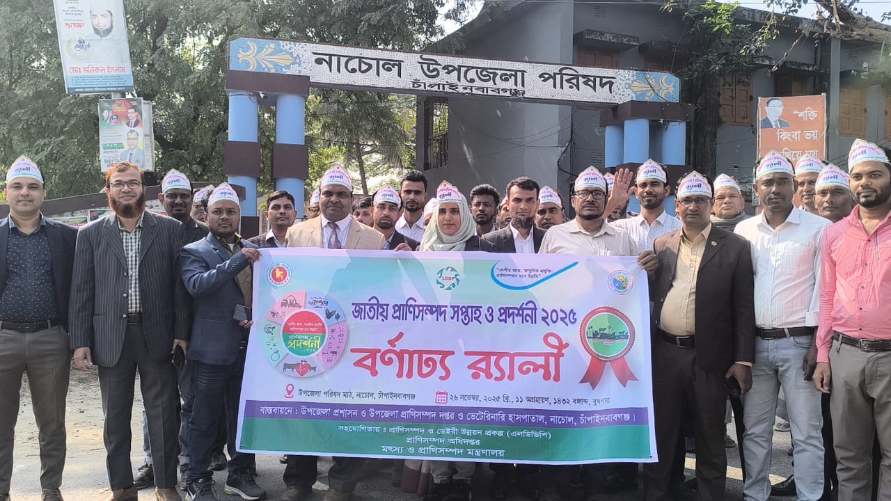 চাঁপাইনবাবগঞ্জের নাচোলে প্রানী সম্পাদ সপ্তাহ ও প্রদর্শনী উদ্বোধন হয়েছে। বুধবার নাচোল উপজেলা প্রানী সম্পাদ অধিদপ্তরের আয়োজনে নাচোল উপজেলা পরিষদ মাঠে র্যালী শেষে ফিতা কেটে প্রানী সম্পাদ সপ্তাহ ও প্রদর্শনীর/২০২৫ এর উদ্বোধন করেন উপজেলা নির্বাহী অফিসার (অতিরিক্ত দায়িত্ব) সুলতানা রাজিয়া। পরে প্রধান অতিথি ও অন্যান্য অতিথিবৃন্দ প্রতিটি স্টল পরিদর্শন করেন। পরিদর্শন শেষে উপজেলা মঞ্চে উপজেলা প্রানী সম্পদ কর্মকর্তা ডাঃ কাওসার আলীর সভাপতিত্বে আলোচনাসভ সভায় প্রধান অতিথির বক্তব্য রাখেন উপজেলা নির্বাহী অফিসার (অতিরিক্ত দায়িত্ব) সুলতানা রাজিয়া। বিশেষ অতিথি ছিলেন উপজেলা কৃষি কর্মকর্তা সলেহ আকরাম, মৎস্য কর্মকর্তা ইমরুল কায়েস, হিসাবরক্ষণ কর্মকর্তা শহিদুল ইসলামও নেজামপুর ইউপি চেয়ারম্যান আমিনুল ইসলাম প্রমূখ । অনুষ্ঠানটি সঞ্চালনা করেন পল্লী উন্নয়ন কর্মকর্তা হারুন অর রশিদ। প্রধান অতিথি বলেন, প্রানী সম্পাদ দেশের অর্থনীতির এক গুরুত্বপূর্ন চালিকা শক্তি। প্রযুক্তি নির্ভর খাবার পরিচালনার মাধ্যমে মাংশ, দুধ, ডিম নাচোলে স্বংসম্পূর্ণ করা সম্ভব। উদ্যোক্তারা প্রানী সম্পাদ দপ্তরের পরামর্শ নিলে সরকারী সুযোগ সুবিধা সহজেই পাবেন। ডাঃ কাওসার আলী বলেন, গবাধি পশুর টিকা, চিকিৎসা পরামর্শ আমার টিম পাঠ পর্যায়ে পৌছে দিচ্ছে। খামারিরা এখন উন্নত জাতের গুরু-ছাগল, হাঁস মুরগি পালনে আগ্রহী হচ্ছে। তিনি প্রানী সম্পাদ খাতের সম্ভবনা, রোগ প্রতিরোধ,পুষ্ঠির উন্নয়ন, আধুনিক খামার ব্যবস্থাপনা, নাচোল প্রানী সম্পাদ হাসপাতালে আল্ট্রাসনোগ্রাম ও মলমূত্র রক্ত দিয়ে রোগ নির্নয় করা হচ্ছে বলে বক্তব্যে তুলে ধরেন।