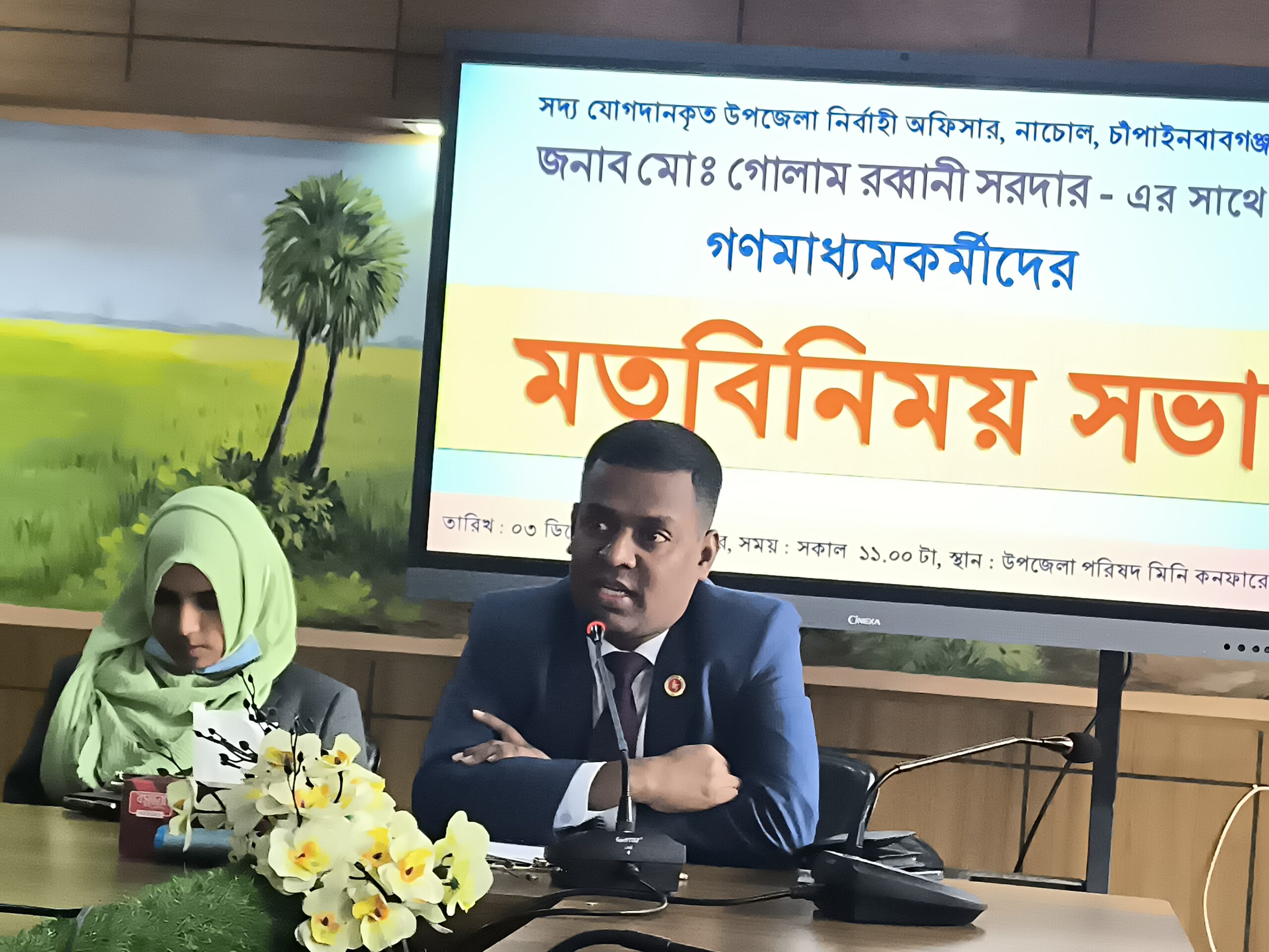 চাঁপাইবাবগঞ্জের নাচোলে গনমাধ্যম কর্মীদের সাথে উপজেলা নির্বাহী অফিসার গোলাম রব্বানি সরদার মতবিনিময় করেন।