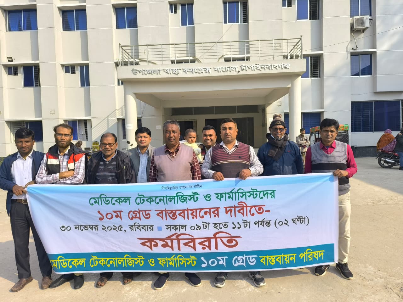 নাচোলে টেকনোলজিস্ট ও ফার্মাসিস্টদের কর্মবিরতি পালন