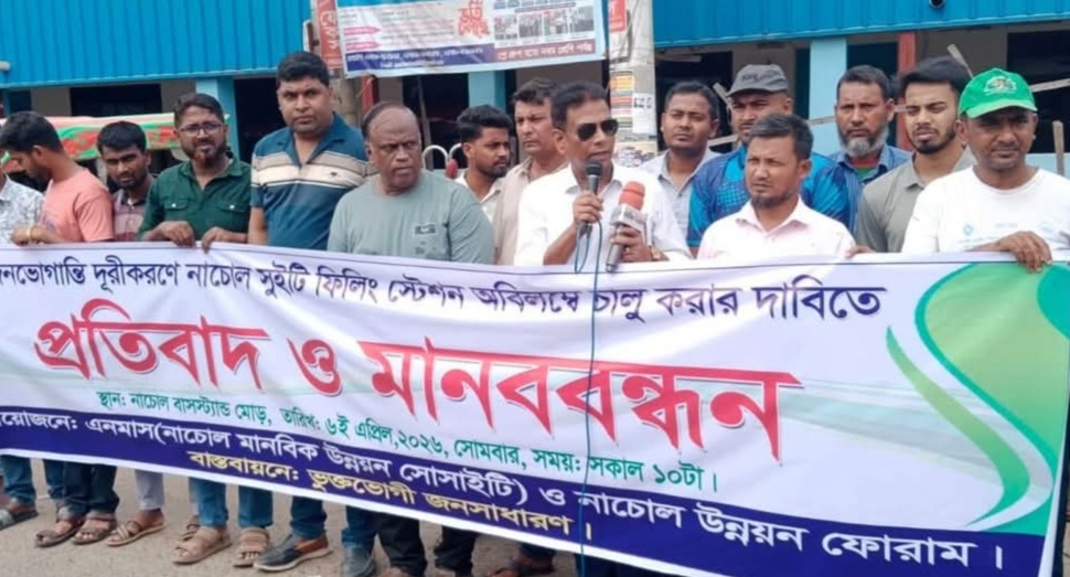 নাচোলে বন্ধ পেট্রোল পাম্পটি চালুর দাবীতে মানববন্ধন