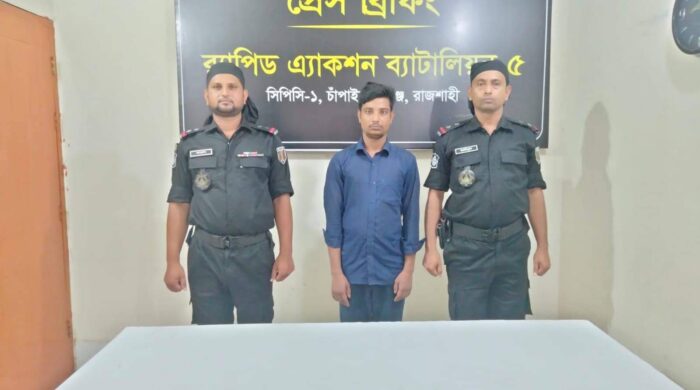 জারিফ হোসেন স্টাফ রিপোর্টার চাঁপাইনবাবগঞ্জ র‍্যাব-৫ কর্তৃক ৪০০ বোতল ফেন্সিডিলসহ ০১ জন মাদক ব্যবসায়ীকে গ্রেফতার করা হয়।র‍্যাপিড এ্যাকশন ব্যাটালিয়ন (র‍্যাব) প্রতিষ্ঠাকালীন সময় থেকেই দেশের সার্বিক আইন শৃঙ্খলা পরিস্থিতি সমুন্নত রাখার