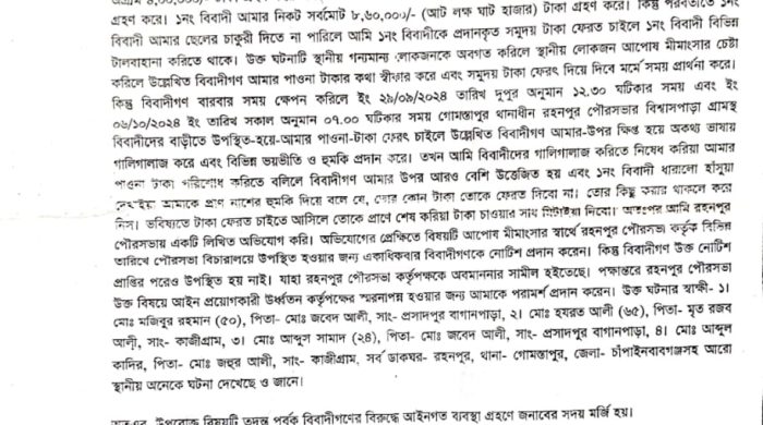 চাঁপাইনবাবগঞ্জের গোমস্তাপুরে পুলিশে চাকরি দেওয়ার কথা বলে প্রায় ৮ লক্ষ৬০ হাজার টাকা হাতিয়ে নেওয়ার অভিযোগ উঠেছে ছাত্রলীগ নেতা নাসিমের বিরুদ্ধে। ভুক্তভোগী ও অভিযোগ সূত্রে জানা যায়, গত এক বছর আগে