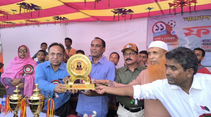 হাবিবুল্লাহ সিপন: চাঁপাইনবাবগঞ্জ এর নাচোলে বৈষম্য বিরোধী ফুটবল টুর্নামেন্টের ফাইনাল খেলার অনুষ্ঠিত। সোমবার বিকাল ৩টায় নাচোল রেলস্টেশন মাঠে মল্লিকপু ফুটবল দল বনাম বাংলাদেশ পুলিশ সার্ভিস ফুটবল দলের মধ্যে ফাইনাল খেলা