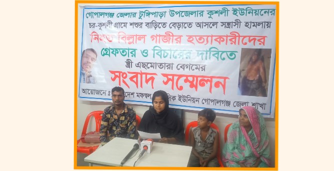 গোপালগঞ্জ প্রতিনিধি : গোপালগঞ্জ জেলার টুঙ্গিপাড়া উপজেলা কুশলী ইউনিয়নের চর-কুশলী গ্রামে ৮ বছর পর শশূর বাড়ি বেড়াতে এসে রাত প্রায় সাড়ে বারটায় খুন হয় বিল্লাল গাজী। খুনিরা বিল্লাল গাজীকে