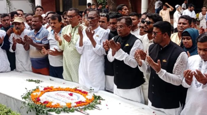 পলাশ সিকদার, গোপালগঞ্জ জেলা প্রতিনিধি: বাংলাদেশ জাতীয় শ্রমিকলীগের ৫৪তম প্রতিষ্ঠা বার্ষিকীতে গোপালগঞ্জের টুঙ্গিপাড়ায় বঙ্গবন্ধু শেখ মুজিবুর রহমানের সমাধিতে শ্রদ্ধা নিবেদন করেছেন । গোপালগঞ্জ সদর উপজেলার কাজুলিয়া ইউনিয়ন শাখার শ্রমিক নেতারা। read more