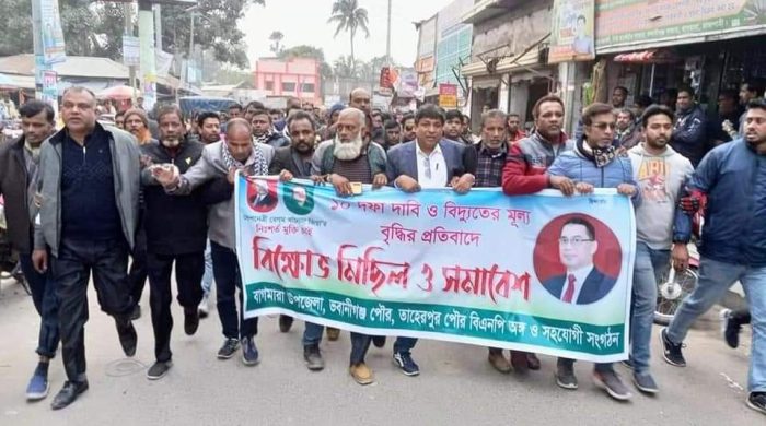 মিজানুর রহমানঃ জাতীয়বাদী দল বিএনপি’র কেন্দ্রীয় কর্মসূচির অংশ হিসেবে বাগমারায় বিএনপির উদ্যোগে ১০ দফা দাবি ও বিদ্যুতের দাম বৃদ্ধির প্রতিবাদে বিক্ষোভ মিছিল ও সমাবেশ হয়েছে। সোমবার রাজশাহীর বাগমারা উপজেলা বিএনপি,