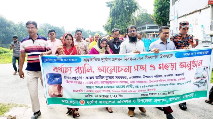 বাগমারা প্রতিনিধিঃ “দুর্যোগে আগাম সতর্কবার্তা, সবার জন্য কার্যব্যবস্থা” প্রতিপাদ্যকে সামনে রেখে রাজশাহীর বাগমারায় আন্তর্জাতিক দুর্যোগ প্রশমন দিবস পালিত হয়েছে। বৃহস্পতিবার সকাল ১০ টায় দুর্যোগ ব্যবস্থাপনা অধিদপ্তর ও উপজেলা প্রশাসনের আয়োজনে