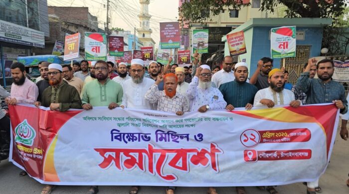 সংবিধান সংস্কারের দাবিতে চাঁপাইনবাবগঞ্জে বিক্ষোভ মিছিল ও সমাবেশ করেছে বাংলাদেশ জামায়াতে ইসলামীসহ ১১ দলীয় জোট। শনিবার (১২ এপ্রিল) বিকেল ৫টায় পৌরপার্কে সংক্ষিপ্ত সমাবেশ শেষে বিক্ষোভ মিছিল বের হয়ে শহরের গুরুত্বপূর্ণ read more